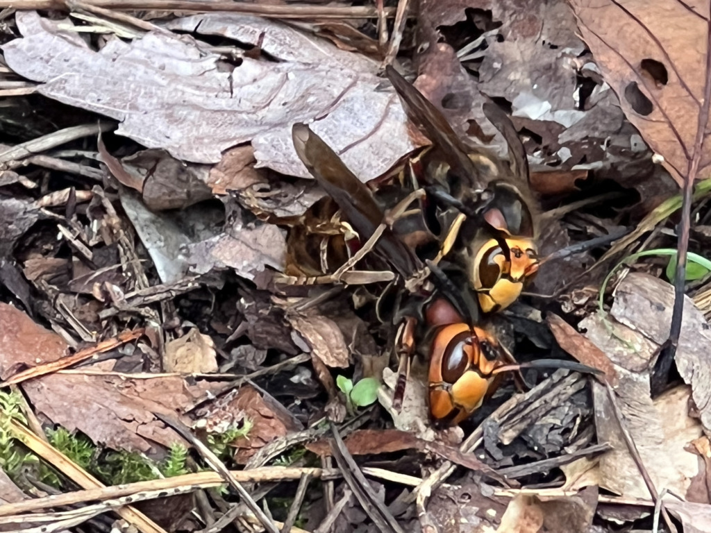 スズメバチの交尾の最中でした。メスは新女王バチで、この後越冬します。